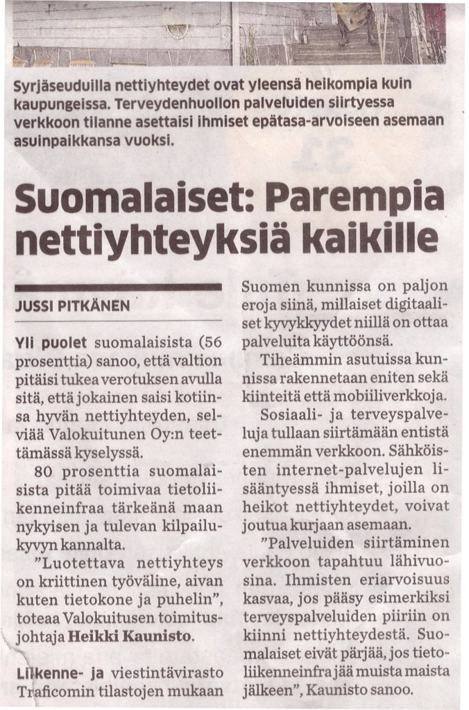 Asiat valokuidun tarpeesta ja mobiiliyhteyksien haavoittuvuudesta ovat pysyneet samana tai tulleet vieläkin ilmeisemmiksi. Ainoana yhteytenä mobiiliverkko on kelvoton – vuoden aikana puhelin ei täällä toiminut kolmeen viikkoon kun olivat kaataneet maston. Tähän episodiin ei tarvittu edes ulkoisia tekijöitä – operaattorin omat tekemiset riittivät.
